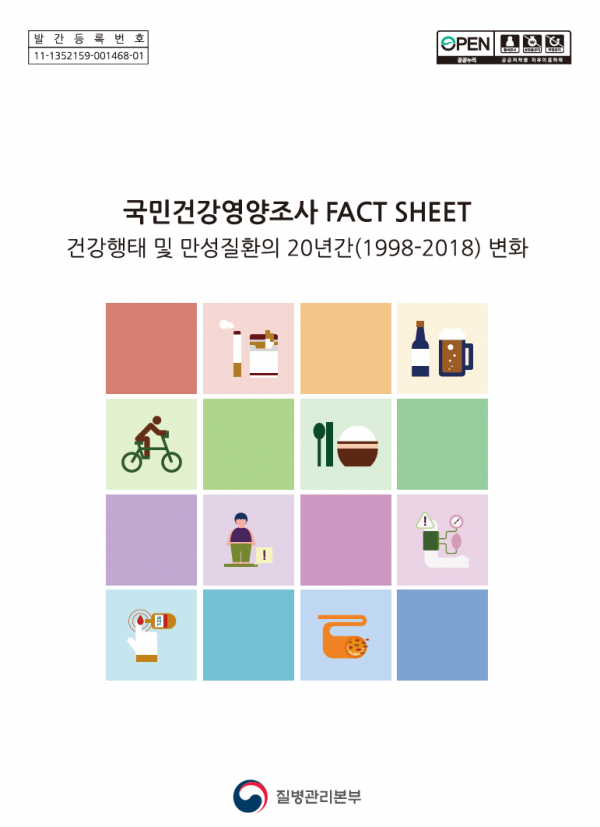 통계집에는 국민건강영양조사 20년간 결과를 기반으로 우리나라 성인의 흡연, 음주, 신체활동, 식생활과 같은 건강행태와 만성질환 등 8개의 세부영역으로 나누어 주요 결과를 담았다.