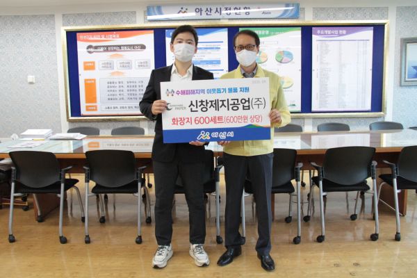 [충청뉴스큐] 신창제지공업가 집중호우 피해주민 지원을 위해 지난 9일 아산시에 600만원 상당의 화장지 600세트를 전달했다.