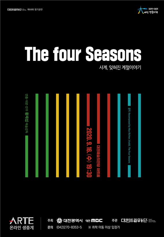 [충청뉴스큐] 시립무용단은 코로나19로 인한 사회적 거리두기 2단계 상황에 따라 제68회 정기공연 ‘사계-잊혀진 계절 이야기’를 오는 16일 오후 7시 30분 아르떼TV를 통해 온라인으로 생중계 한다.
