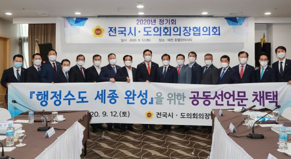 세종시의회 이태환 의장이 제출한 ‘행정수도 세종 완성을 위한 공동선언문’이 지난 12일 대전 호텔인터시티에서 열린 전국시도의회의장협의회 2020년도 정기회에서 원안 가결되면서 균형발전을 위한 지방의회 연대 움직임 역시 한층 본격화될 전망이다.