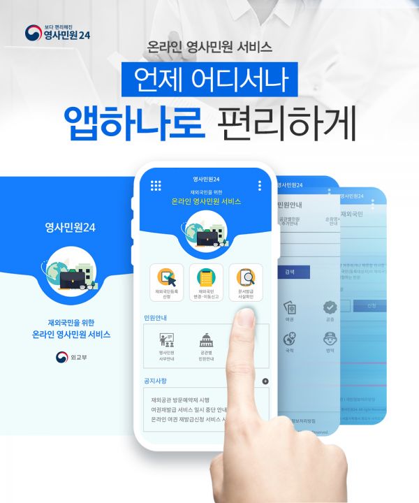 [충청뉴스큐] 외교부는 우리 국민이 영사민원업무 서비스를 시간과 장소에 구애 받지 않고 휴대폰으로 편리하게 이용할 수 있는‘영사민원24 앱’ 서비스를 오는 15일부터 시작한다.