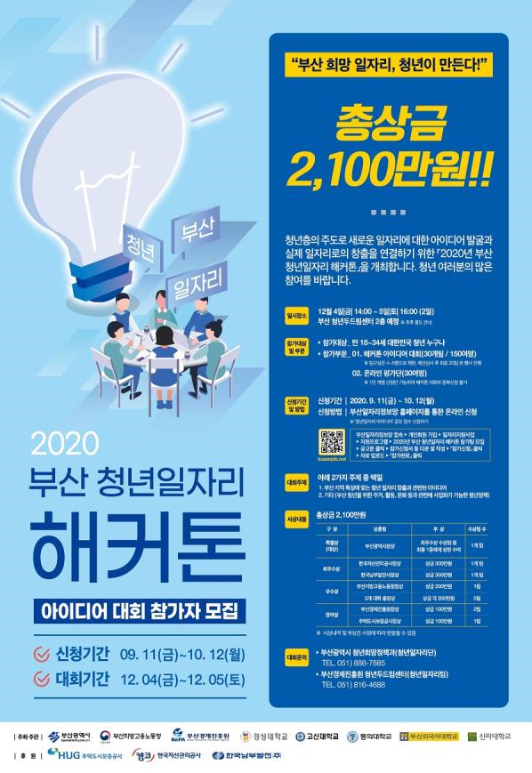 [충청뉴스큐] 부산시는 오는 12월 4일과 5일 이틀간 진행하는 ‘2020 부산 청년일자리 해커톤’에 참가할 대한민국 청년 참가팀을 10월 12일까지 모집한다고 밝혔다.