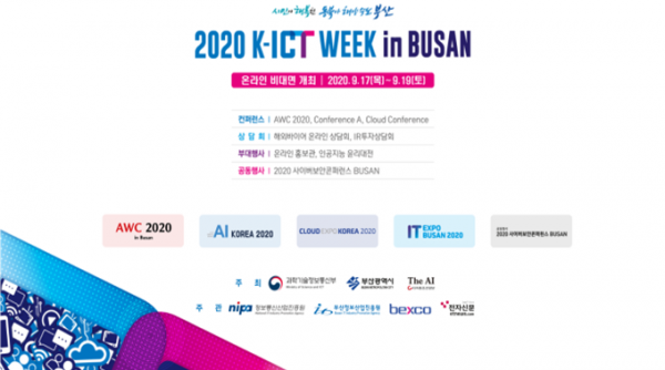 [충청뉴스큐] 부산시는 지역 최대 인공지능, 클라우드, 정보통신기술 전문행사인 ‘2020 K-ICT WEEK in BUSAN’을 9월 17일부터 19일까지 3일간 온라인·비대면으로 개최한다고 밝혔다 ‘2020 K-ICT WEEK in BUSAN’은 부산시와 과학기술정보통신부, 디지틀조선일보가 주최하고 부산정보산업진흥원, 정보통신산업진흥원, 벡스코, 전자신문이 공동 주관한다.
