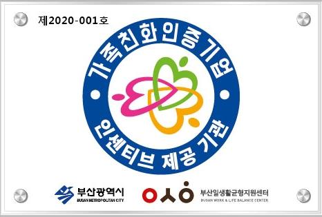 ‘가족친화인증’이란 자녀출산 및 양육지원, 유연근무제도, 가족친화 직장문화 조성 등 가족친화 제도를 모범적으로 운영하는 기업 및 공공기관에 대해 심사를 통해 인증을 부여하는 것으로 부산시 일·생활균형지원센터에서 가족친화인증 기업발굴 및 컨설팅 지원을 하고 있다.
