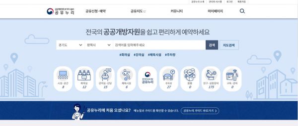 대국민 공공개방자원 공유 서비스 통합포털인 ‘공유누리’는 중앙행정기관, 지방자치단체 및 공공기관 등이 유휴 시간대 개방하는 시설, 물품 등 개방된 자원 현황을 온라인에서 쉽게 찾아 예약할 수 있도록 지난 3월부터 시작한 서비스다.