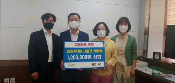 [충청뉴스큐] 청주FC가 15일 코로나19로 어려움을 겪고 있는 아동복지시설과 결식 위험이 있는 아동에게 지원해달라며 청주시에 롯데리아 햄버거세트 교환권 200매을 기탁했다.