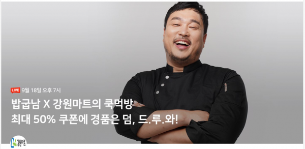 오픈 행사에서는 도내 유명 유튜버‘밥굽남’이 출연해 소고기, 돼지고기, 버섯, 전통주, 김치, 냉면 등 강원도에서 생산된 신선한 제품을 실시간 판매하고 다양한 경품행사도 함께 진행할 예정이다.