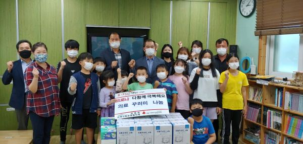 의료꾸러미는 체온계 및 마스크 등 아이들에게 맞춤형으로 구성됐으며 전동면 지역아동센터 19명의 어린이에게 전달됐다.