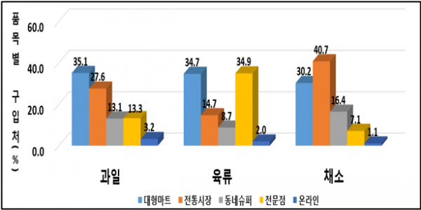 또한, 선물용 농식품 구매 시 대형마트를 가장 많이 이용한다고 답했고 온라인, 전통시장·전문점이 뒤를 이었다.