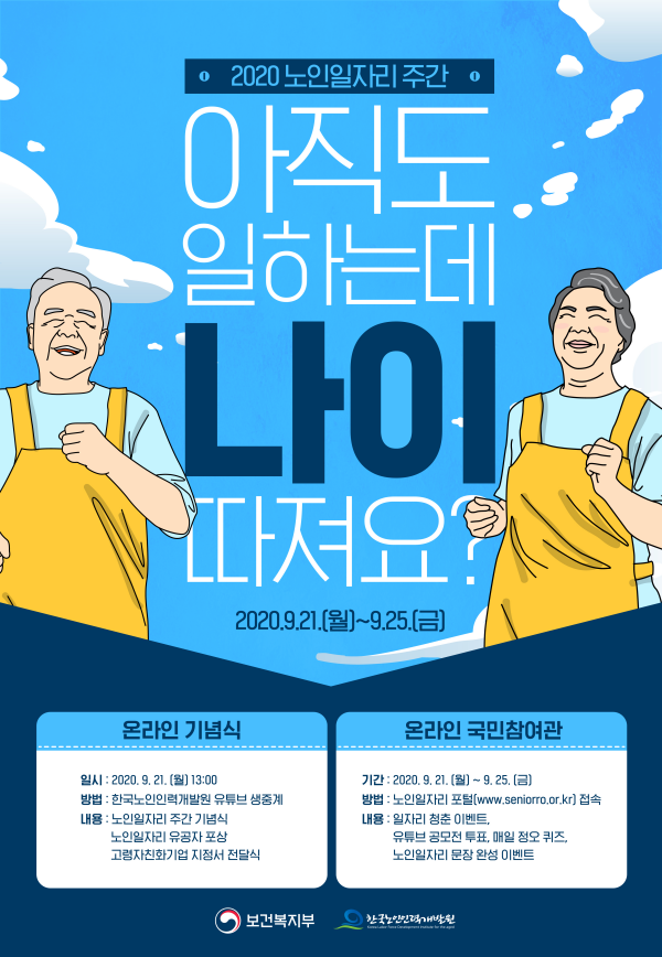 노인일자리 주간 동안에는 모든 국민이 온라인으로 직접 참여할 수 있는 다양한 행사도 진행한다.