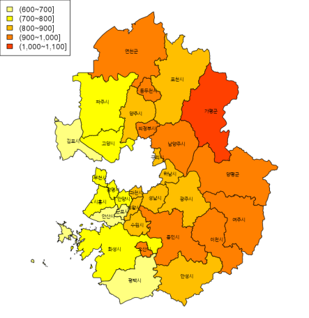 경기도는 7월 20일부터 8월 15일까지 시군별 600~1,100mm의 집중호우가 발생해 수해와 산사태를 피할 수 없었다.