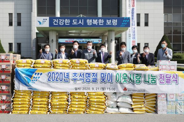 [충청뉴스큐] 보령시는 지난 21일 시청 광장에서 추석명절을 앞두고 각급 기관 및 단체로부터 이웃사랑 후원물품을 전달받았다고 밝혔다.