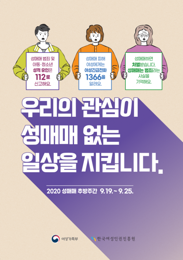 ‘성매매 추방주간’은 ‘성매매방지 및 피해자보호 등에 관한 법률’에 따라 매년 9월 19일부터 25일까지로 지정돼 있다.