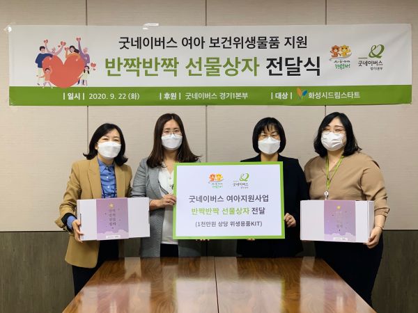 [충청뉴스큐] 굿네이버스가 청소년의 건강한 성장을 돕고자 화성시 드림스타트에 ‘반짝반짝 선물상자’100개를 22일 후원했다.
