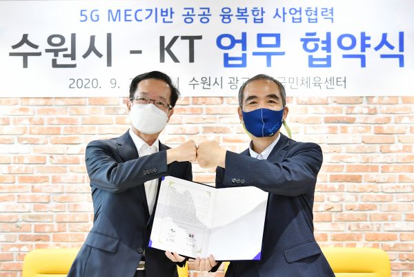 업무협약식에 참석한 KT 전홍범 부사장은 “수원시와 이번 업무협약을 시작으로 공공 분야에 5G MEC 기반의 안전한 융복합 서비스를 제공, 차별화된 통신 네트워크와 ICT 역량을 바탕으로 코로나19로 인한 불편을 최소화할 수 있도록 노력하겠다”고 말했다.