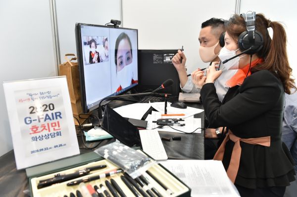 [충청뉴스큐] 경기도 중소기업들이 지난 22일부터 진행 중인 ‘2020 경기우수상품 해외전시회 호치민’에서 비대면 화상 시스템을 통해 베트남 현지 바이어와 수출 상담을 진행하고 있다.