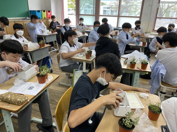 이 프로그램은 올해 코로나19로 체험농장 활동이 어려워져 사막정원, 아로마 캔들 ,인삼비누, 사과와플 ,떡볶이와 맜있는 소스 만들기 등 테마가 있는 교실 안 진로체험으로 추진됐다.