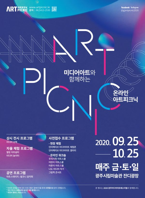 행사와 관련된 내용 확인 및 사전 접수 신청은 2020 아트피크닉 홈페이지 또는 SNS에서 확인할 수 있고 자세한 사항은 아트피크닉 사무국으로 문의하면 된다.