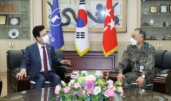 [충청뉴스큐] 허태정 대전시장이 23일 오후 코로나19 방역활동과 수해복구 활동을 지원한 32사단을 위문했다.