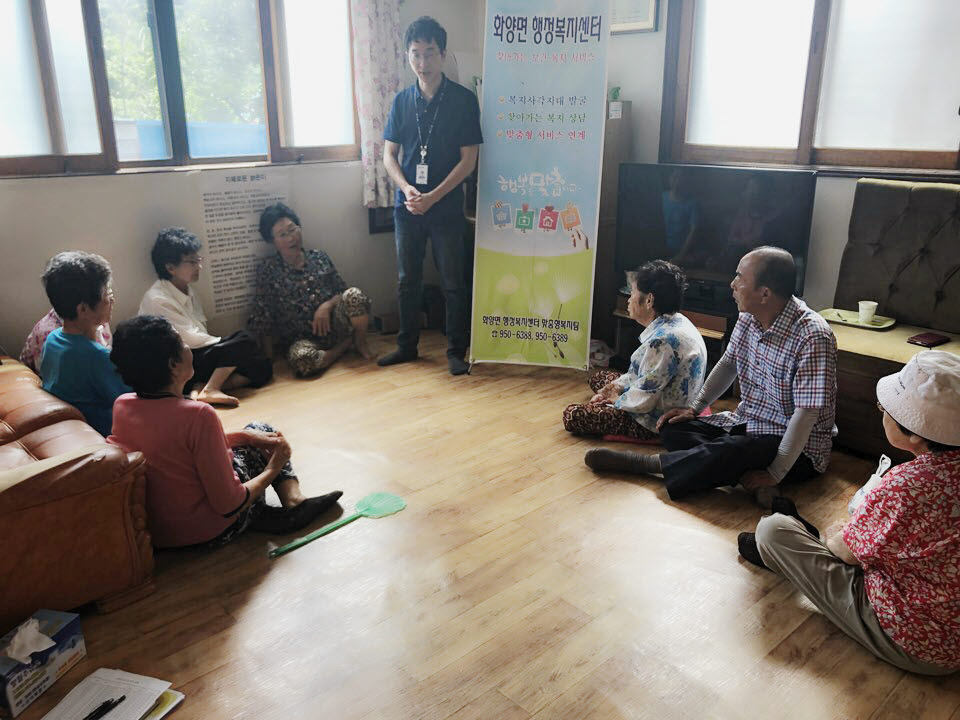 올해 4월부터 화양면에서 추진 중인 ‘똑똑!! 복지상담실’은 마을로 직접 찾아가 복지소식을 전달하는 것뿐만 아니라 1:1 상담 및 복지서비스 신청 대행 등 맞춤형 복지서비스를 제공하고 있다.