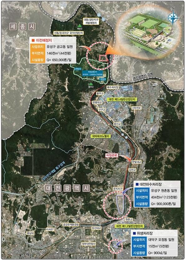 한편 대전하수처리장 이전·현대화사업은 원촌동 일대 하수처리장과 오정동 일대의 분뇨처리장을 금고동 자원순환단지 인근으로 통합 이전하는 사업으로 하수처리시설을 지하화해서 악취 발생을 원천적으로 차단하고 지상에는 체육시설 등 각종 주민편익시설을 설치해 첨단화, 현대화하는 사업이다.