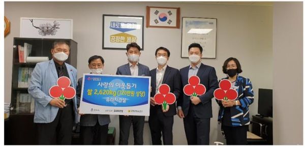 ㈜유리치건설 관계자는 “고덕의 아파트 분양을 성공리에 마치면서 응원해주시는 분들이 화환 대신 쌀을 보내주어 추석 명절을 앞두고 어려운 이웃들에게 전달하도록 기탁하게 됐다”고 말했다.