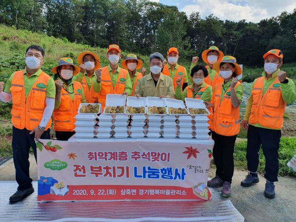[충청뉴스큐] 안성시 삼죽면 경기행복마을관리소는 지난 22일 행복마을관리소 지킴이 10명이 추석명절을 맞아 직접 전을 만들어 관내 취약계층 독거노인 40가구에 전달하는 나눔 행사를 가졌다고 밝혔다.
