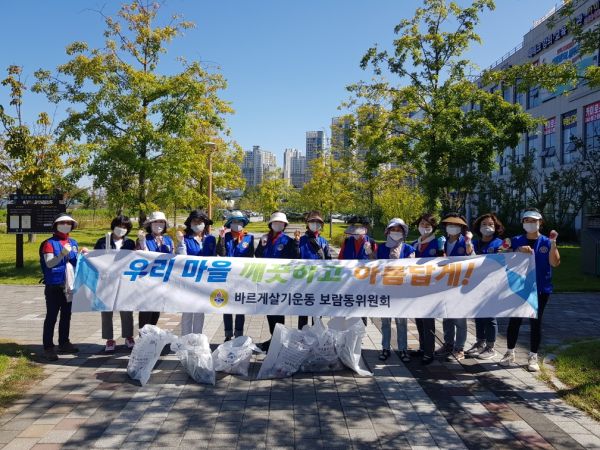 [충청뉴스큐] 세종특별자치시 바르게살기운동 보람동위원회가 25일 근린공원 및 금강수변공원 일대에서 추석 명절맞이 ‘보람동 환경정화 활동’을 전개했다.