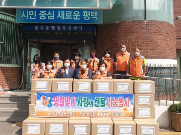 [충청뉴스큐] 평택시 송북동 지역사회보장협의체는 25일 추석을 맞아 소외된 이웃에게 희망을 주기위한 추석선물 꾸러미 30박스 전달 행사를 실시했다.