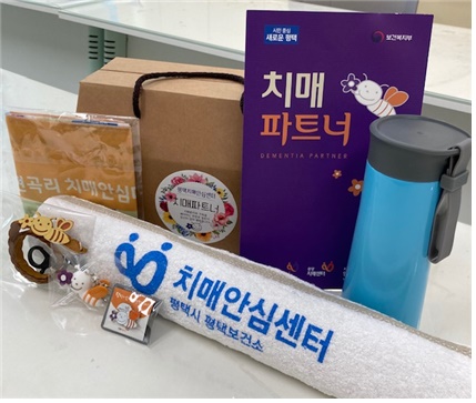 평택치매안심센터에서는 매달 온라인 교육을 수강해 신규 가입된 치매파트너 중 추첨을 통해 치매파트너임을 상징하는 치매파트너증과 함께 단비 마스크 스트랩 및 단비 열쇠고리&배지세트를 포함한‘기억등대 꾸러미’를 자택 배송하는 캠페인을 진행하고 있다.