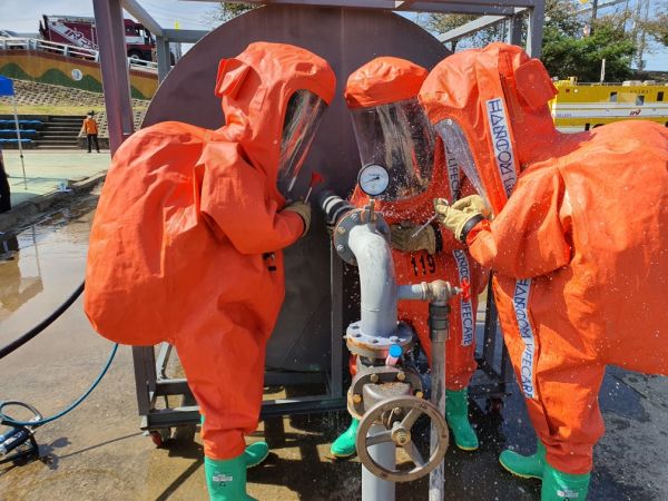 세부 훈련 내용으로는 유해화학물질 누출사고 시 초동 대처 인명탐색 및 구조 유해화학물질 차단 및 분석 유해화학물질 사고 대응 장비 조작법 등이다.