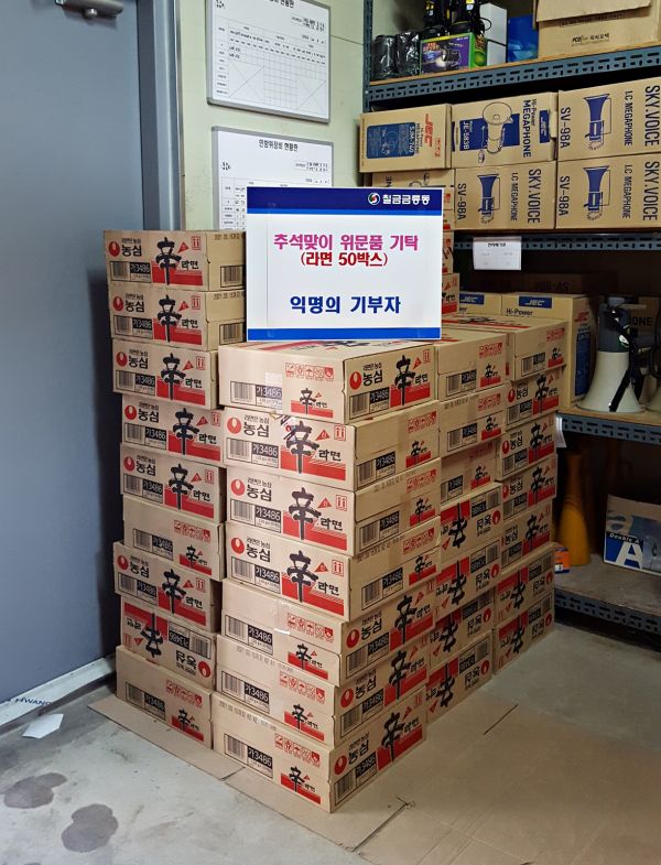 칠금금릉동행정복지센터를 방문한 익명의 기부자는 라면 50박스를 기탁하며 지역 내 홀몸노인, 장애인, 취약계층 등 이웃들을 위해 사용해 달라는 뜻을 밝혔다.