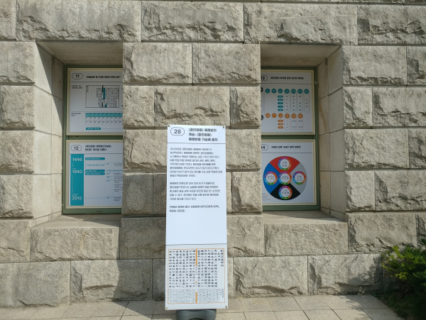 [충청뉴스큐] 서울시는 세종국어문화원과 함께 간송미술문화재단의 후원으로 올해 한글날을 맞이해 한글의 창제원리와 사용법을 담은 ‘훈민정음 해례본 이야기’ 를 9월 28일부터 10월 18일까지 서울도서관 외벽에 전시 한다.