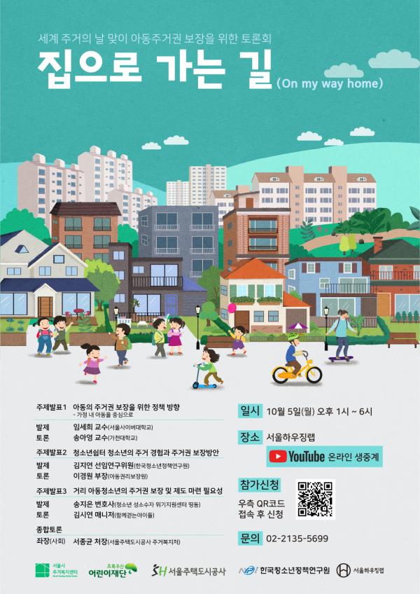 서울시와 SH공사는 10월 5일 서울하우징랩에서 아동주거권 보장 토론회를 개최한다고 밝혔다.