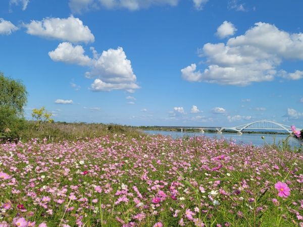 [충청뉴스큐] 평택시 오성강변 자전거도로 및 하천변 일원에 조성한 코스모스가 가을철을 맞아 장관을 연출하고 있다.