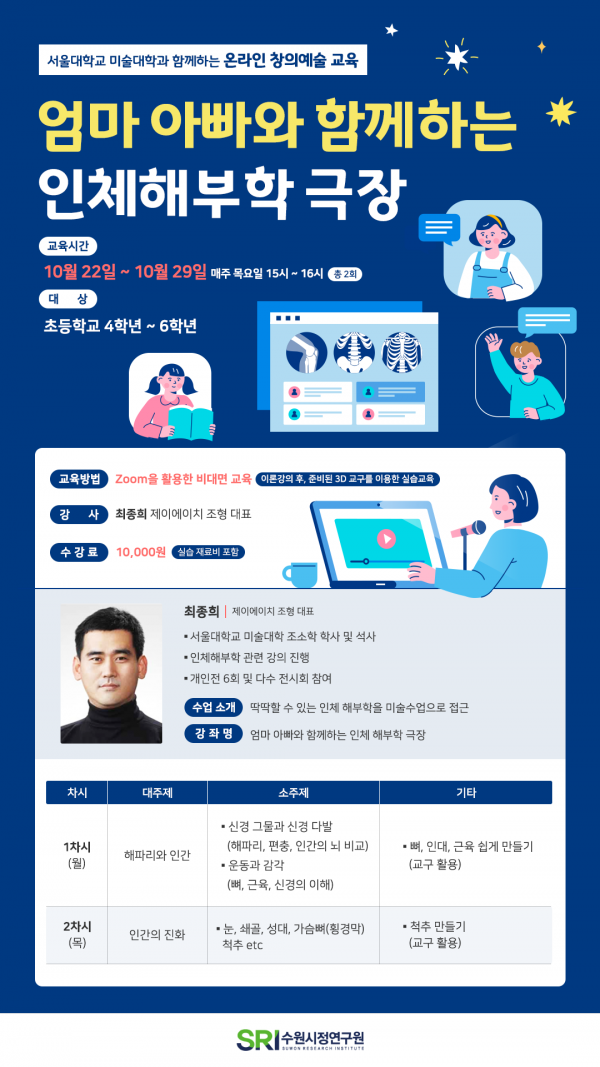 수원시정연구원이 운영하는 수원시민자치대학은 10월 중 ‘서울대 미대와 함께하는 창의예술교육’ 온라인 프로그램을 시범 운영한다.