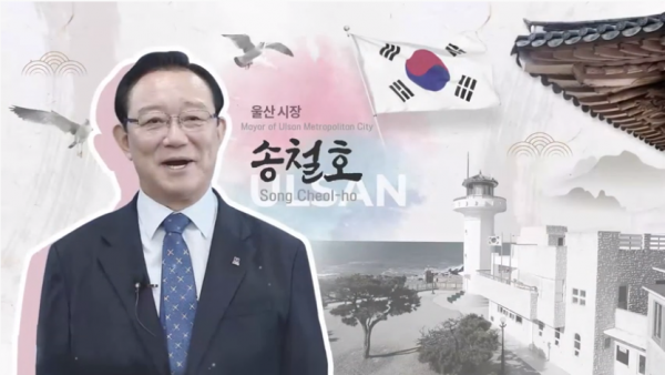 송철호 시장은 울산이 자동차 조선 석유화학에 이어 수소경제, 오일가스허브 등 신성장산업 도시로 거듭나고 있다고 소개하며 태화강국가정원을 비롯한 울산의 수려한 자연경관도 영상으로 보여 줬다.