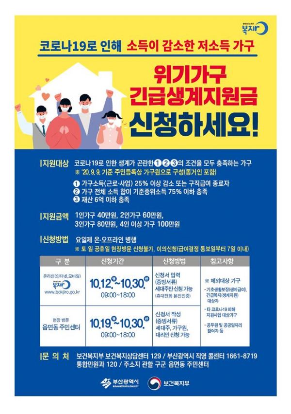 변성완 부산시장 권한대행은 “이번 긴급생계지원이 저소득 위기가구 안정적인 생활과 빈곤 사각지대 해소에 조금이나마 도움이 되길 바란다”고 전했다.