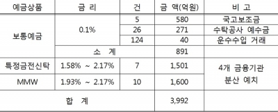 [충청뉴스큐] 전국 최대 지방공기업인 서울교통공사가 관리하고 있는 9월말 여유자금 4천억 원 중 900억 원 상당이 0.1% 보통예금에 방치된 상태이며, 상시감시시스템과 전문운용인력 없이 수천억 원의 자금을 운용하고 있는 등 사고 위험에 고스란히 노출된 것으로 밝혀졌다.