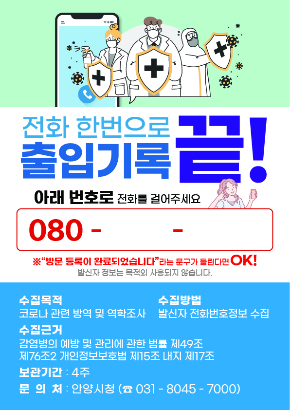[충청뉴스큐] 전화 한 통으로 출입기록을 남기는 ‘방역콜’시스템이 운영된다.