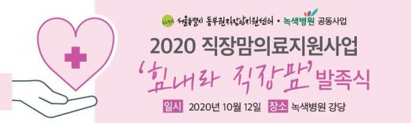 서울시동부권직장맘지원센터는 10월 12일 녹색병원 과 ‘직장맘 건강 안전망 구축’을 위한 ‘직장맘의료지원사업 ‘힘내라 직장맘’’ 공동사업 발족식을 개최한다.