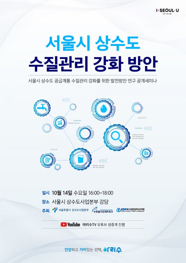 세미나 당일 유튜브에서 ‘아리수TV’를 검색하고 채널 내 ‘서울시 상수도 공급계통 수질관리 강화를 위한 발전방안 공개 세미나’ 실시간 방송에 입장하면 시청 가능하다.
