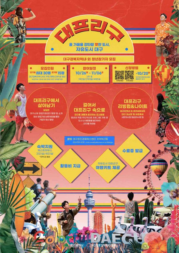 [충청뉴스큐] 대구시와 대구창조경제혁신센터는 창업에 관심있는 출향청년의 유턴을 돕기 위해 ‘자유도시대구, 대프리구’[창업편]을 마련, 이달 20일까지 참가자를 모집한다.