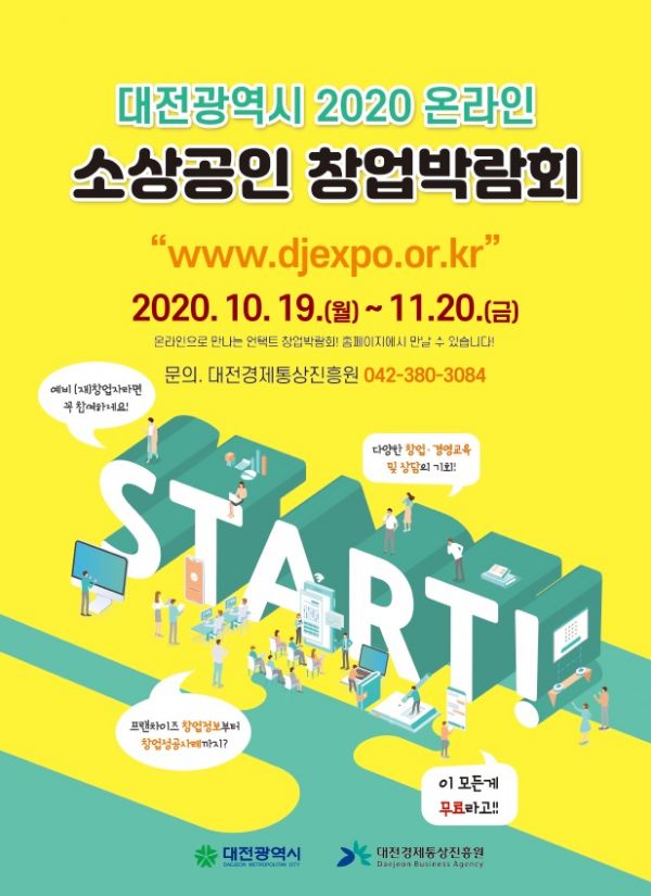 [충청뉴스큐] 대전시는 지역 내 예비창업자들에게 다양한 창업기회를 제공하고 여러 창업 모델을 선보이기 위해 오는 19일부터 다음달 20일까지 ‘2020년 대전 소상공인 창업박람회’를 온라인으로 개최한다고 15일 밝혔다.