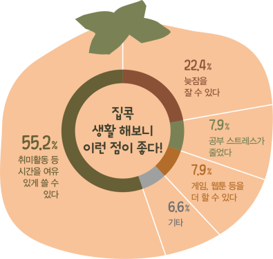 공부 스트레스가 줄었다는 답변과 게임, 웹툰 등을 더 할 수 있어서 좋다는 답변은 각각 7.9%를 차지했다.