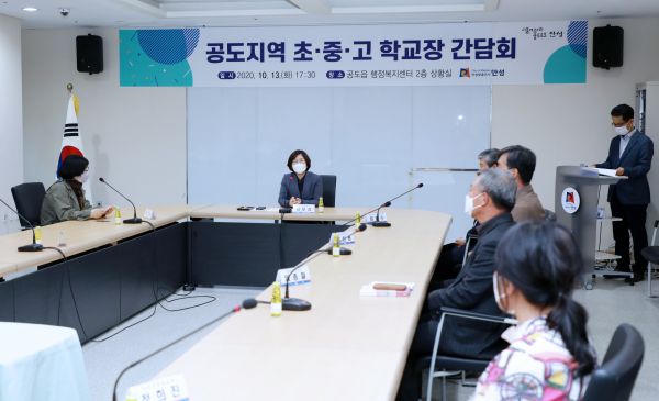 이날 간담회는 급속하게 발전하고 있는 공도지역의 초·중·고등학교 학교장과 교육여건 변화에 능동적으로 대처하고 공도지역의 중·장기적인 교육발전 방안을 모색하고자 마련됐다.
