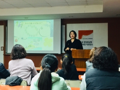‘소중한 사람과 함께 책읽기’ 연수는 초등 1~3학년의 자녀와 함께하는 과정이었다. ‘소중한 것’을 키워드로 [특별한 책꽂이], [나에게 소중한 것]이라는 테마로 북카페 둘러보기, 자녀와 함께 책읽고 나만의 책꽂이 만들기, 느낌나누기의 과정과 그림책과 시집이 들어있는 [럭키백] 선택하기와 좋은 구절 찾고 책갈피 만들기 등 다채로운 체험활동이 이뤄졌다.