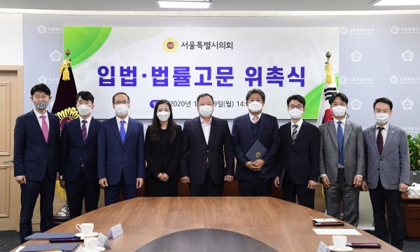 [충청뉴스큐] 서울시의회는 20.9.1.자로 위촉된 7명의 입법·법률고문에 대한 위촉식을 지난 10월 19일 오후 2시, 서울특별시의회 본관 2층 의장접견실에서 개최했다.