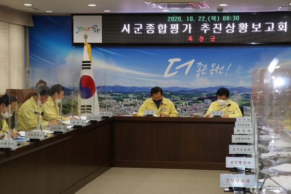 [충청뉴스큐] 옥천군은 22일 상황실에서 김재종 옥천군수 주재로 부군수, 국장, 실과소장 등 간부공무원 25여명이 참석한 가운데 2021년 시군종합평가 추진상황보고회를 개최했다.