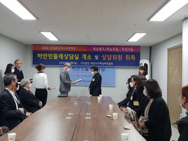22일 장애인들의 아픈 마음을 달래고 치유를 돕고자 전문적인 심리상담실“하얀민들레상담실”을 개소하고 재능봉사 상담위원을 위촉했다.